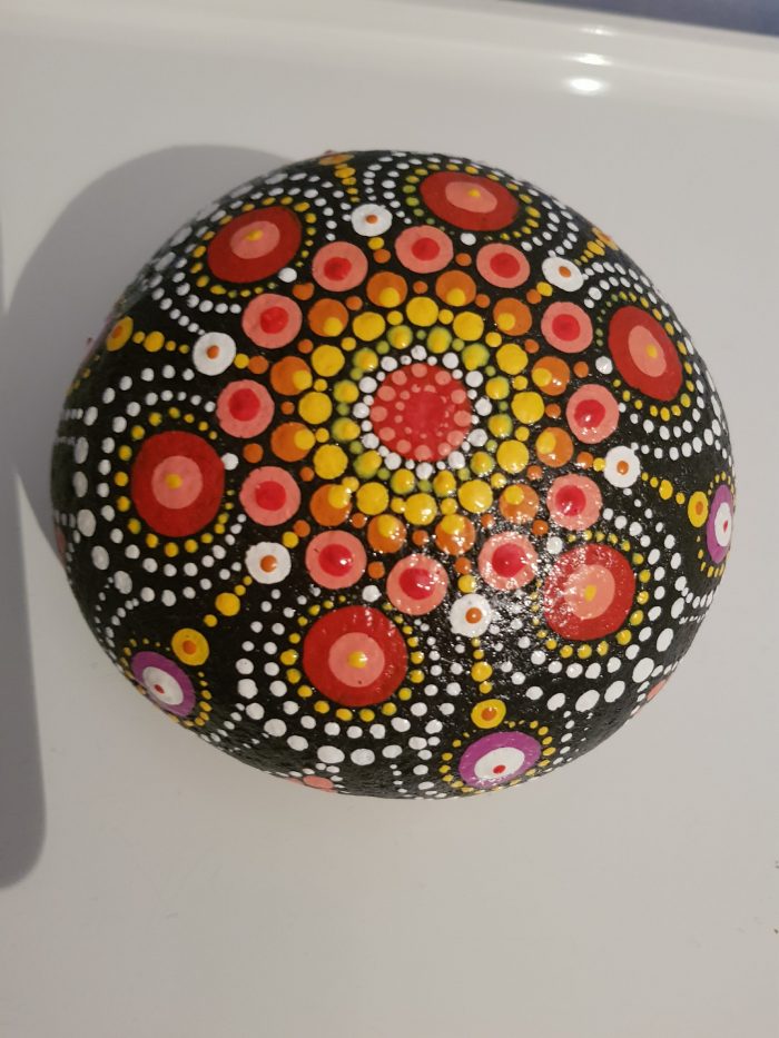 – მანდალა მართლა ვირუსივით შემეყარა. წარმოიდგინეთ, სამი დალაგების შემდეგ რომ მოხვალ შინ და ქვაზე წერტილების დასმას რომ დაიწყებ… მანდალის ხატვაში სიმეტრია მომწონს, ლამაზად სწორად წერტილების განლაგება. დასრულებისას კი ფაბერჟეს კვერცხს ან მრგვალ ზარდახშას ჰგავს.