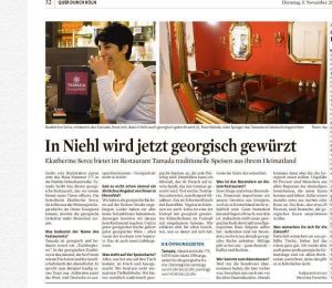 გამოცემა კიოლნში ქართული რესტორნის, „თამადას“ გახსნას ეხმაურება და მცირე ინტერვიუს რესტორნის ქართველ მეპატრონესთანაც გვთავაზობს.