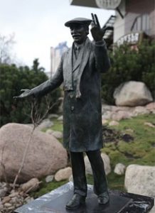 სწორედ ამ სკულპტურით გაიხსნა ხალხთა შორის მეგობრობის პარკში „მეგობრების ხეივანი“. აღსანიშნავია, რომ ამ ხეივნის პირველი სკულპტურა მიეძღვნა სწორედ ვახტანგ კიკაბიძის კინო გმირს ფილმიდან „მიმინო“. სკულპტურის ავტორი ბელარუსი მოქანდაკე და დიზაინერი, სერგეი ვოზისოვია.