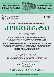 27 დეკემბერს, 18:00 საათზე, კონსერვატორიის მცირე დარბაზში ვოკალური მუსიკის საღამო გაიმართება.