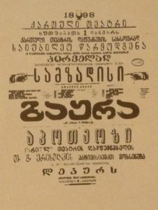 როგორც პროფესორი ვასილ კიკნაძე წერს, გიორგი ერისთავმა ქართველი არისტოკრატიის მხარდაჭერითა და რუსეთის მეფისნაცვალ ვორონცოვის ხელშეწყობით, გიმნაზიის, დღევანდელი თბილისის №1 სკოლის შენობაში დადგა პირველი სპექტაკლი, რომლის პიესის ავტორიცა და რეჟისორიც თავად იყო და სპექტაკლში ერთ-ერთი პერსონაჟის, სომეხი ვაჭრის როლსაც ასრულებდა.