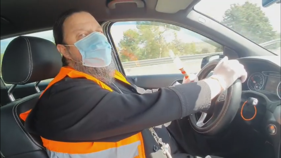 რომში მცხოვრები მღვდელი იტალიაში მყოფ ქართველ ემიგრანტებს კორონავირუსის გამო დაწესებული შეზღუდვების პარალელურად საკუთარი მანქანით მომსახურებას სთავაზობს. არქიმანდრიტი ემიგრანტებს მოუწოდებს სახლში დარჩნენ, თვითონ კი საჭიროების შემთხვევაში წამლებსა და სურსათს მიუტანს.