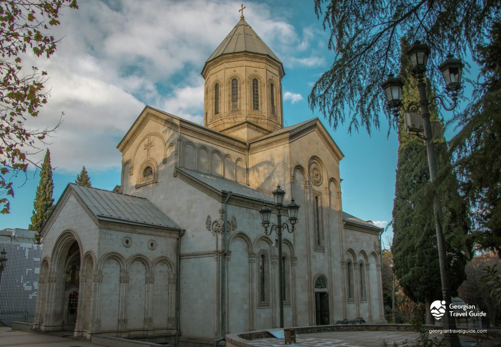 ბილფელდმა თითქმის სამთავისის ასლი შეასრულა, მხოლოდ ნაწილობრივ გარდაქმნა წყობა და ზოგიერთი დეტალი. ორიგინალისაგან განსხვავებით, შენობა დასმულია მაღალი ცოკოლის სართულზე და შესასვლელი სამხრეთის მხრიდან განიერი კიბით უკავშირდება ეზოს (ცოკოლის მოცულობაშიც ეკლესიაა მოთავსებული). განსხვავებულია სარკმელების რაოდენობა, ზოგჯერ ჩუქურთმების ხასიათი, პროფილები. მოჩუქურთმება მაღალ ტექნიკურ დონეზე შეასრულა ქართველმა ქვაზე ჭრის ოსტატმა, ნეოფიტე აგლაძემ, არქიტექტორ ე. ანდრეოლეტის ნახაზებით.