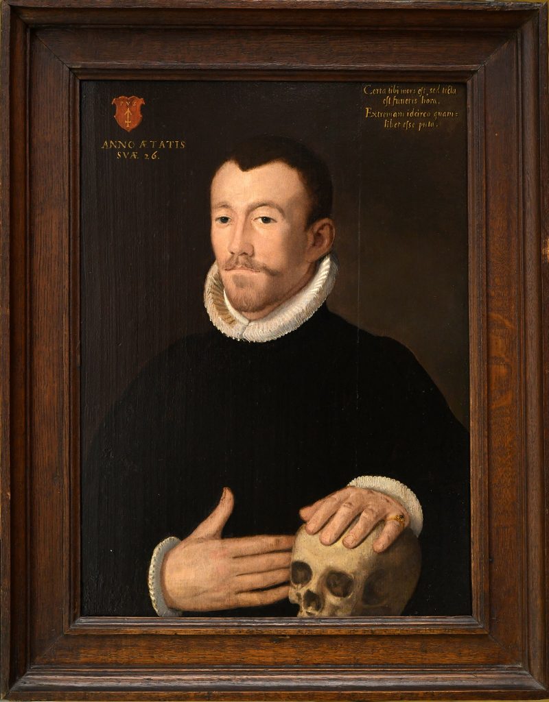 „ეს არის ფერწერული ნამუშევარი, რომელიც ზეთით მუხის დაფაზეა შესრულებული. ასახავს ჯენტლმენს შავ ევროპულ სამოში თეთრი საყელოთი და წყვილი სამკლაურებით. ნახატი მიეკუთვნება ჟანრს, რომელიც ცნობილია როგორც memento mori. შუა საუკუნეებში მიწიერი ცხოვრების გარდამავალი ბუნების ასახვა საკმაოდ ცნობილი პრაქტიკა გახლდათ და მოიხსენიებოდა, როგორც „მემენტო მორი“, აღნიშნული ლათინური ფრაზა ითარგმნება როგორც „გახსოვდეს, რომ ცხოვრება წარმავალია”, – წერს გიორგი კალანდია.