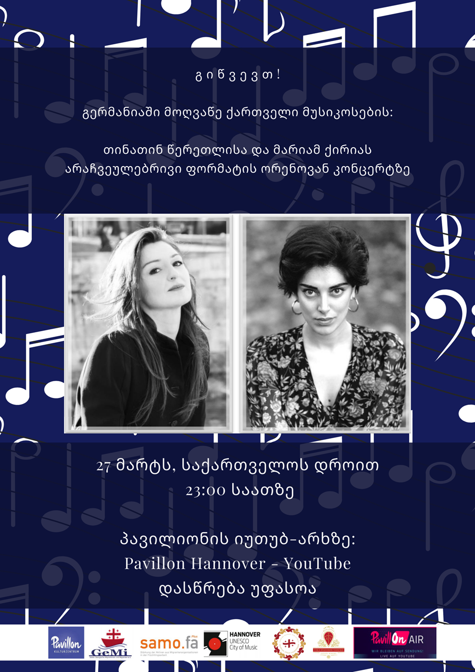 დიასპორების ალიანსი საქართველოსათვის ემიგრანტებისა და ზოგადად, ქართული მუსიკის მოყვარულთათვის ონლაინკონცერტს გამართავს. კონცერტზე, რომელიც 27 მარტს გაიმართება, მონაწილეობას მიიღებენ უცხოეთში მოღვაწე ქართველი მუსიკოსები მარიამ ქირია და თინათინ წერეთელი.