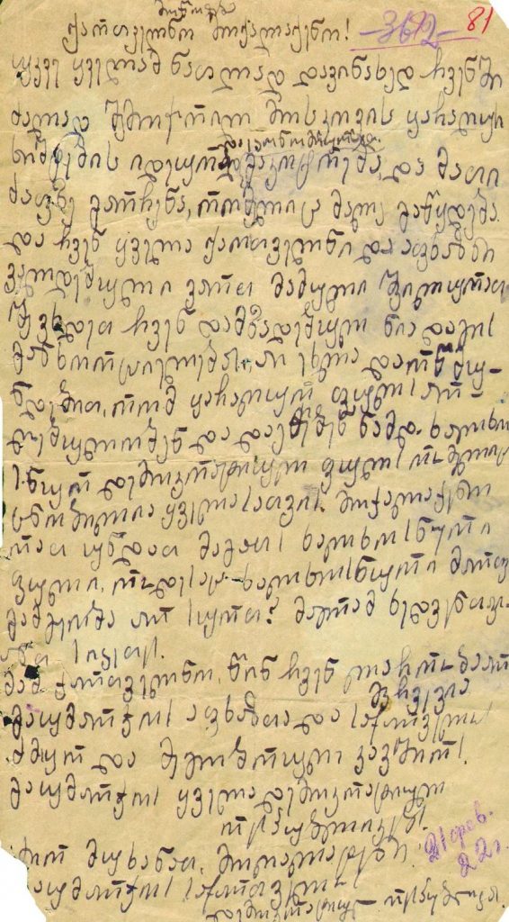 მაშ, ქართველნო, წინ! ჩვენ ლაჩრობა არ გვჩვევია! გაუმარჯოს აფხაზთა და საქართველოს ძმურ და მეგობრულ კავშირს! გაუმარჯოს ყველა დემოკრატიულ რესპუბლიკებს! ძირს მუხანათ მოღალატენი! გაუმარჯოს საქართველოს დემოკრატიულ რესპუბლიკას!“ (სტილი დაცულია)