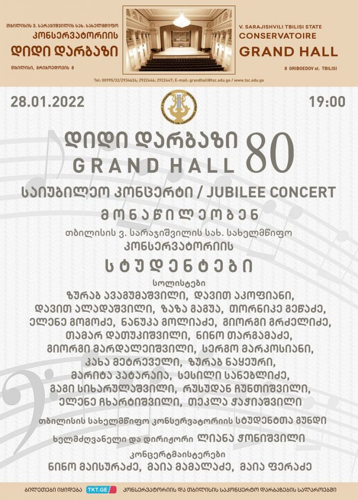 28 იანვარს, კონსერვატორიის დიდი საკონცერტო დარბაზი საიუბილეო თარიღს აღნიშნავს