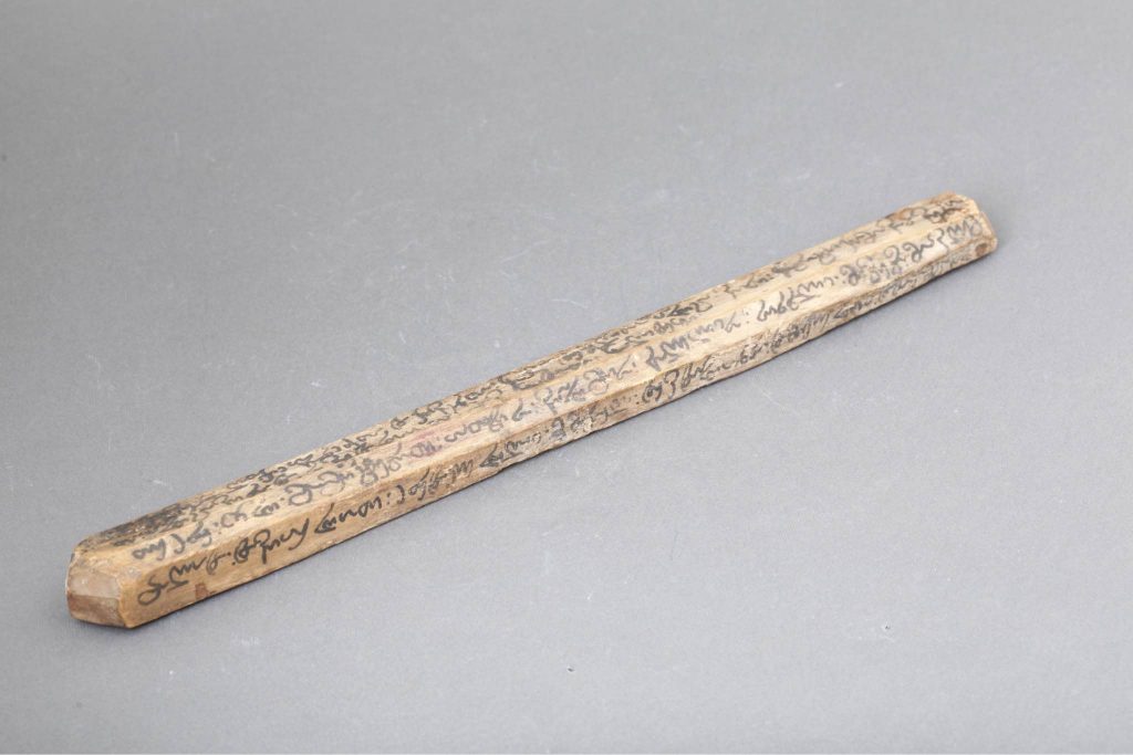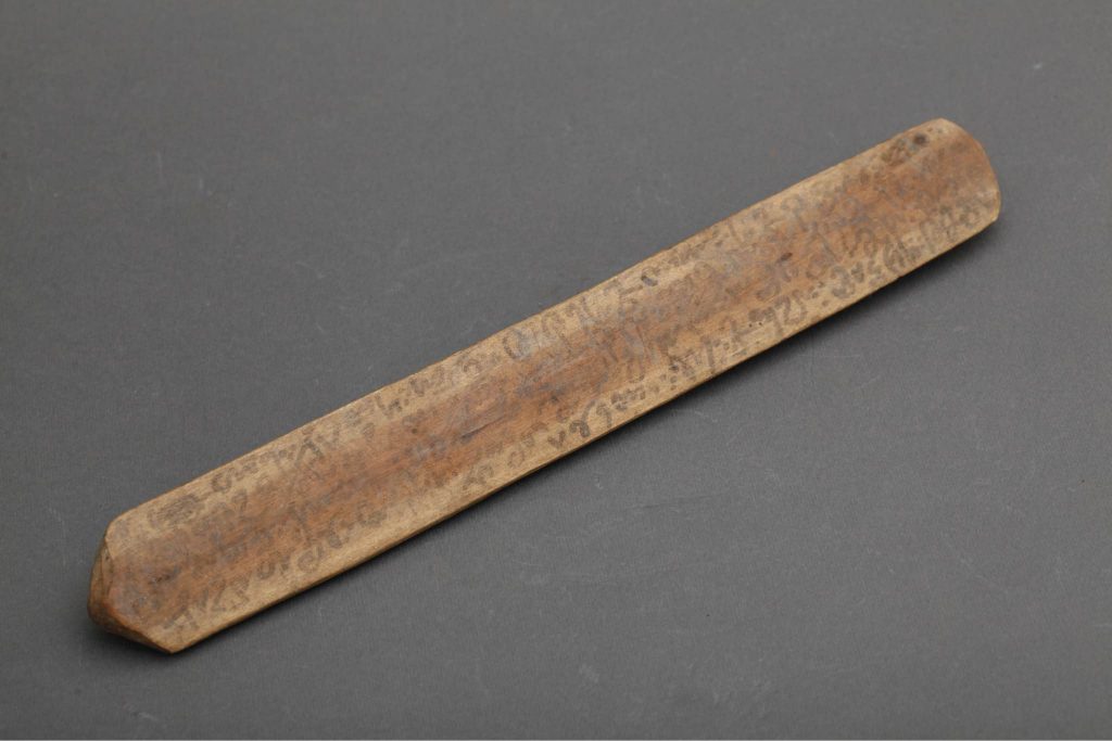 XIV-XV სს. მხედრული, დაწერილია სამწახნაგად გათლილ ხეზე. 30 სმ. ( ფოტო 2)