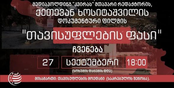 27 სექტემბერს, სოხუმის დაცემის დღეს, საკრებულოს შენობაში მედიაჰოლდინგ “კვირას” დამფუძნებელი, ქეთევან ხოსიტაშვილის საავტორო ფილმის -“თავისუფლების” ფასი” პრემიერა გაიმართა.