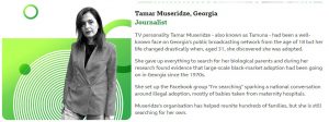 BBC წერს, რომ მუსერიძის ცხოვრება 31 წლის ასაკში შეიცვალა, როდესაც აღმოაჩინა, რომ ნაშვილებია. მან საკუთარი ბიოლოგიური მშობლების ძებნის დროს გამოიკვლია, რომ 1950-იანი წლებიდან საქართველოში ჩვილებით ვაჭრობის მსხვილი შავი ბაზარი არსებობდა, რის შედეგადაც ათასობით ჩვილის მშობლების მოტყუებითა და არალეგალური გზებით გაშვილება მოხდა. თამუნამ ადამიანების დასახმარებლად Facebook-ზე შექმნა ჯგუფი “ვეძებ”, რომელშიც 230 000-ზე მეტი ადამიანია გაწევრიანებული.