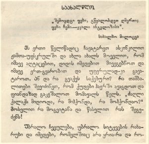 “როგორღაც ტალახიანი და მოღრუბლული ახალი წელი გვითენდება წელს. კაი კი იქნებ თუ დაგვებედეა და მთელი წლის განმავლობაში ამისთანა დღეებმა გასტანა. მაგრამ მოღრუბლულ დღეებსა და გატალახიანებულ ქუჩებს როგორც იქნება გავუძლებთ, საქმე ის არის: გული გვქონდეს სუფთა და სინდისი მოწმენდილი. მა ვინატროთ მთელი ამ წლის განმავლობაში ყველა ჩვენი მკითხველისათვის…”- 1 იანვარი, 1878 წელი.