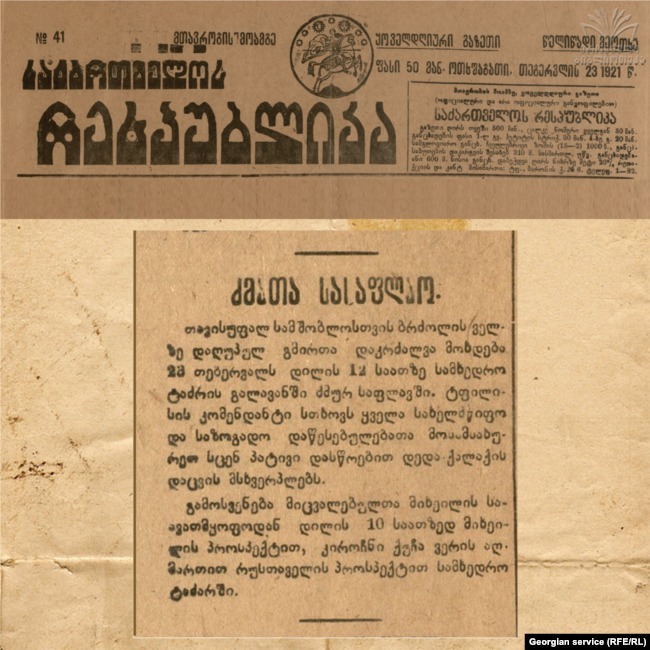 “თავისუფალ სამშობლოსთვის ბრძოლის ველზე დაღუპულ გმირთა დაკრძალვა მოხდება 23 თებერვალს, დღის 12 საათზე , სამხედრო ტაძრის გალავანში, ძმურ საფლავში” – წერდა გაზეთი “საქართველოს რესპუბლიკა” 1921 წლის 23 თებერვალს.
