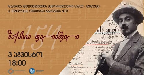 3 აგვისტოს, 18:00 საათზე, მუზეუმების გაერთიანება ზაქარია ფალიაშვილის მემორიალურ სახლ-მუზეუმში ქართველი კომპოზიტორის, დირიჟორისა და პედაგოგის – ზაქარია ფალიაშვილის დაბადების დღისადმი მიძღვნილ ღონისძიებას გამართავს.