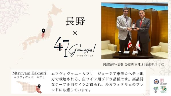 შეგახსენებთ, რომ აღნიშნული პროექტი  იაპონიის 47 პრეფექტურისათვის საგანგებოდ შერჩეული სხვადასხვა ქართული ყურძნის ჯიშისგან დამზადებული ღვინის საჩუქრად გადაცემას ითვალისწინებს და მიზნად იაპონიის რეგიონებში საქართველოს მეღვინეობის კულტურის პოპულარიზაციას ისახავს.