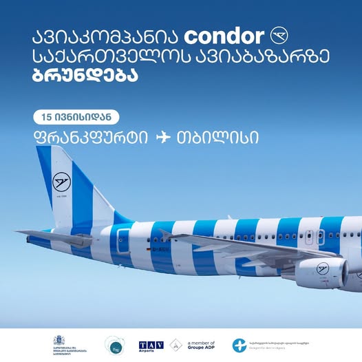 გერმანული ავიაკომპანია Condor Airlines 2026 წლიდან ფრანკფურტი-თბილისი-ფრანკფურტის მიმართულებით ფრენებს ყოველდღიურად შეასრულებს