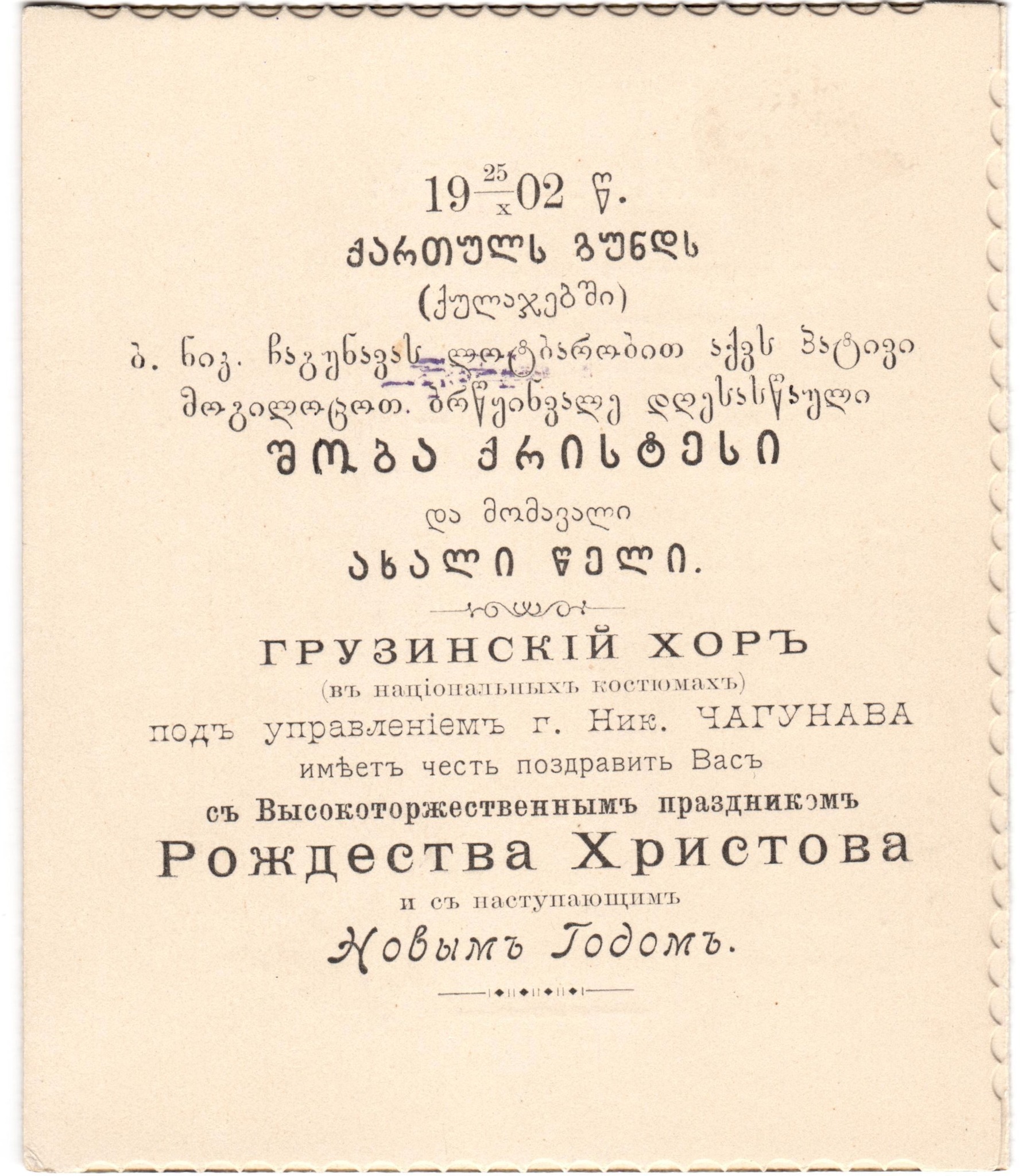 “გიზიარებთ ქართული საახალწლო მისალოცი ღია ბარათების უნიკალურ კოლექციას! პირველი მათგანი 1902 წლით თარიღდება და ხელოვნების სასახლეშია დაცული, აქვეა მიხეილ მამულაშვილის ხელით დამზადებული და ლადო გუდიაშვილის კალიგრაფიით შესრულებული მისალოცები. დანარჩენი ბარათები ჩემი კოლექციიდანაა, მათ შორისაა თოვლის ბაბუის (თოვლის პაპის) და ნაძვის ხის ერთ-ერთი ძველი ფოტო”, – წერს გიორგი კალანდია.