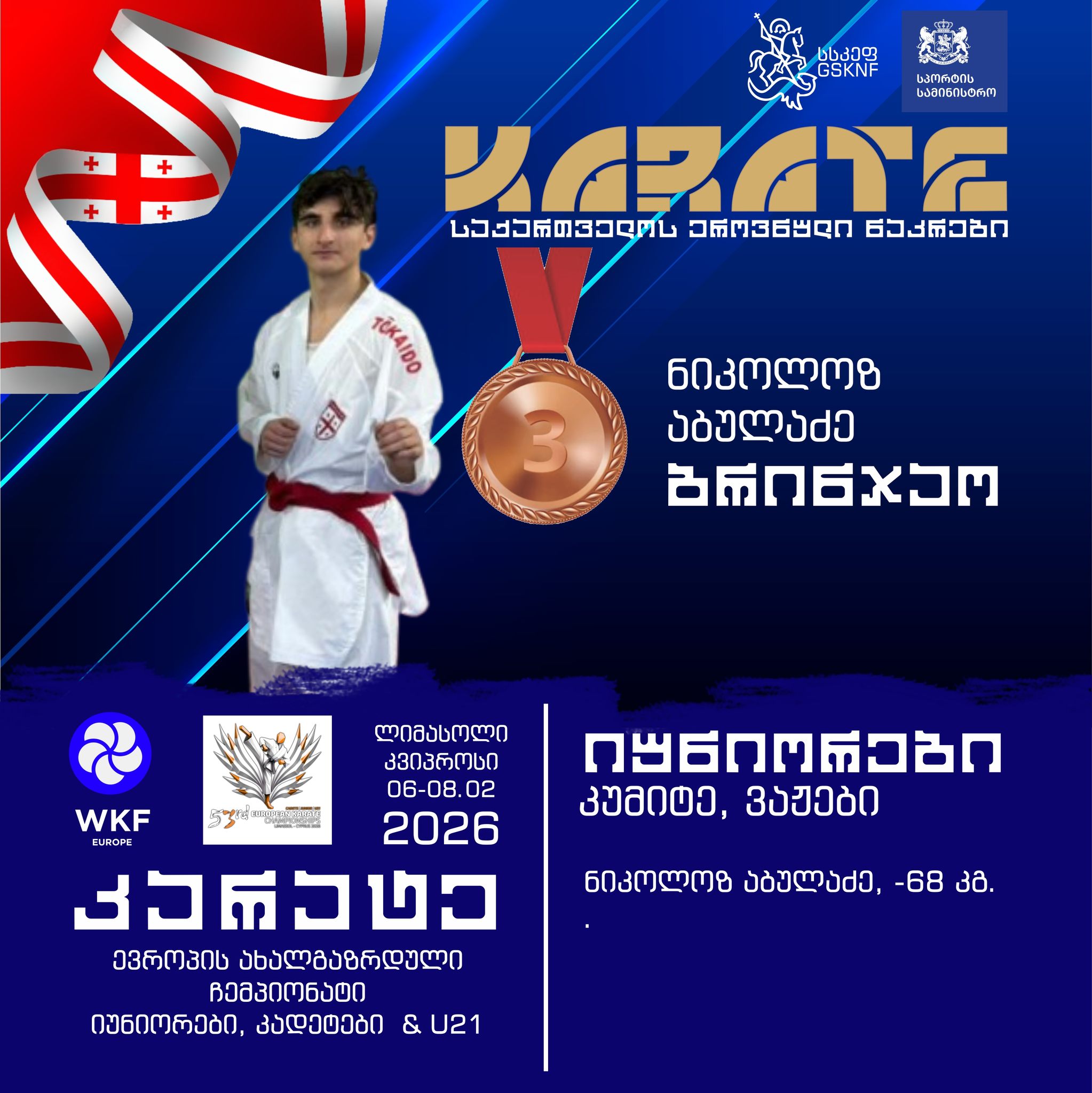 🇬🇪ნიკოლოზ აბულაძე, იუნიორები, -68კგ., ბრინჯაო🥉;