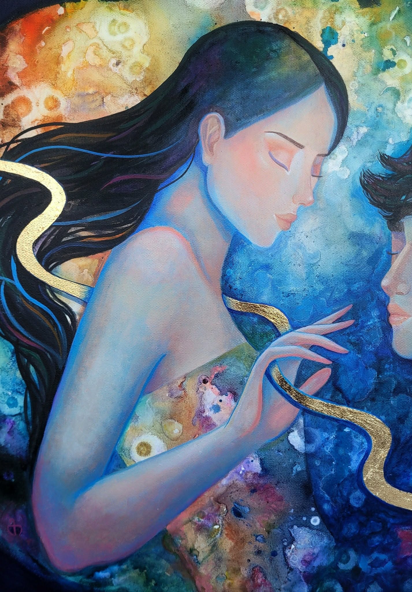 – ასეთია ჩემი ნახატი “საიდუმლო პაემანი”, რომლის დახატვის იდეა გამიჩნდა მაშინ, როცა შემთხვევით არყის ხეების ფოტოს წავაწყდი. ეს ხე ძალიან მისტიკური და სიმბოლურია ჩემთვის, საერთოდ, მიყვარს სიმბოლოები. იმ ფოტოს დანახვაზე მაშინვე არყის ხეების ტყეში წყვილის საიდუმლო პაემანი წარმომიდგა. მათი თვალები იმის სიმბოლოა, რომ სამყაროში არაფერი იმალება, რაც ადრე თუ გვიან არ გამჟღავნდება.