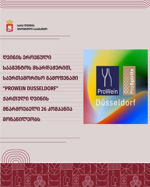 ქართული ღვინის მწარმოებელი 26 კომპანია გერმანიაში, მსოფლიოს უდიდეს ღვინის გამოფენაში – ProWein Dusseldorf მონაწილეობს
